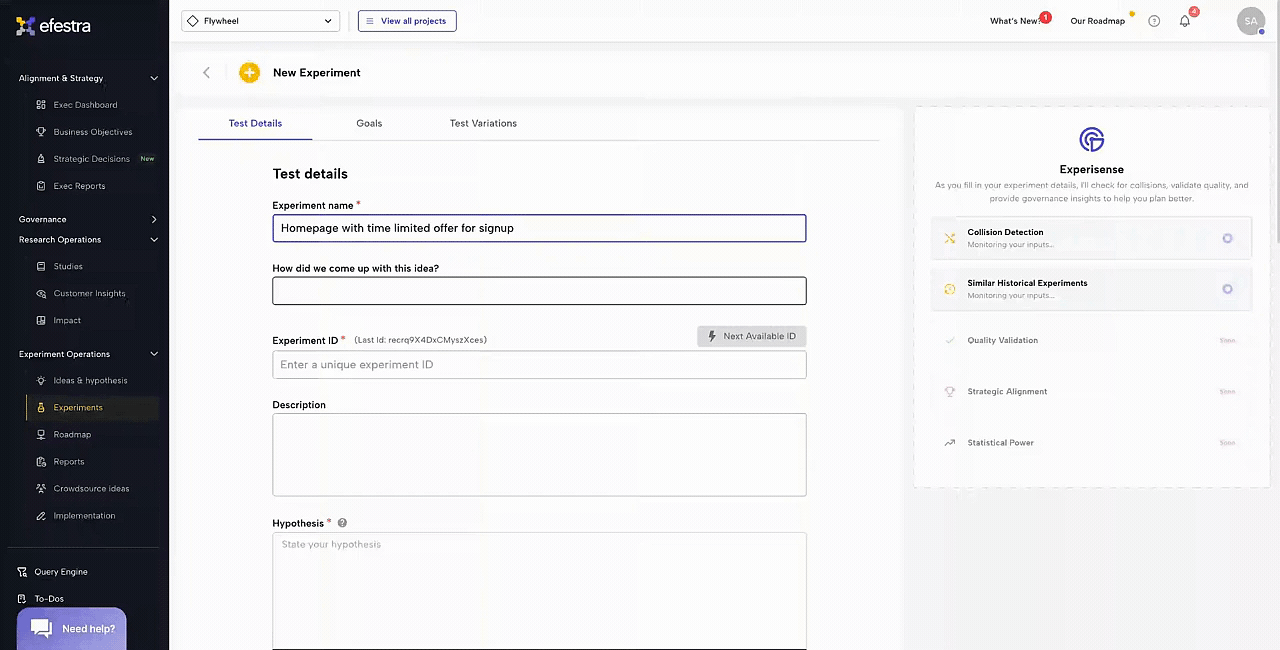 No more maintaining experiment records across Notion, Airtable, Jira, Google Sheets, and Slack. One governed system handles the complete lifecycle from ideation through to business outcome.